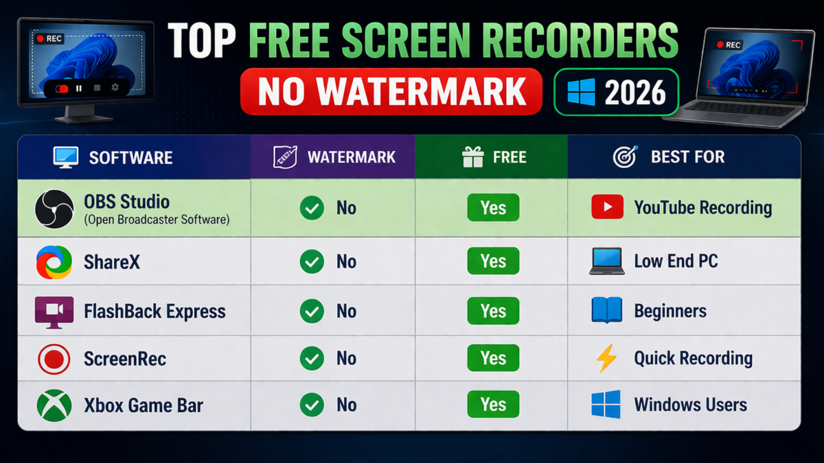 You Finding the best free screen recorder for PC without watermark is important for gamers, YouTubers, students, and online teachers. Many free screen recording software add watermarks or limit recording time, which makes them useless for professional work.